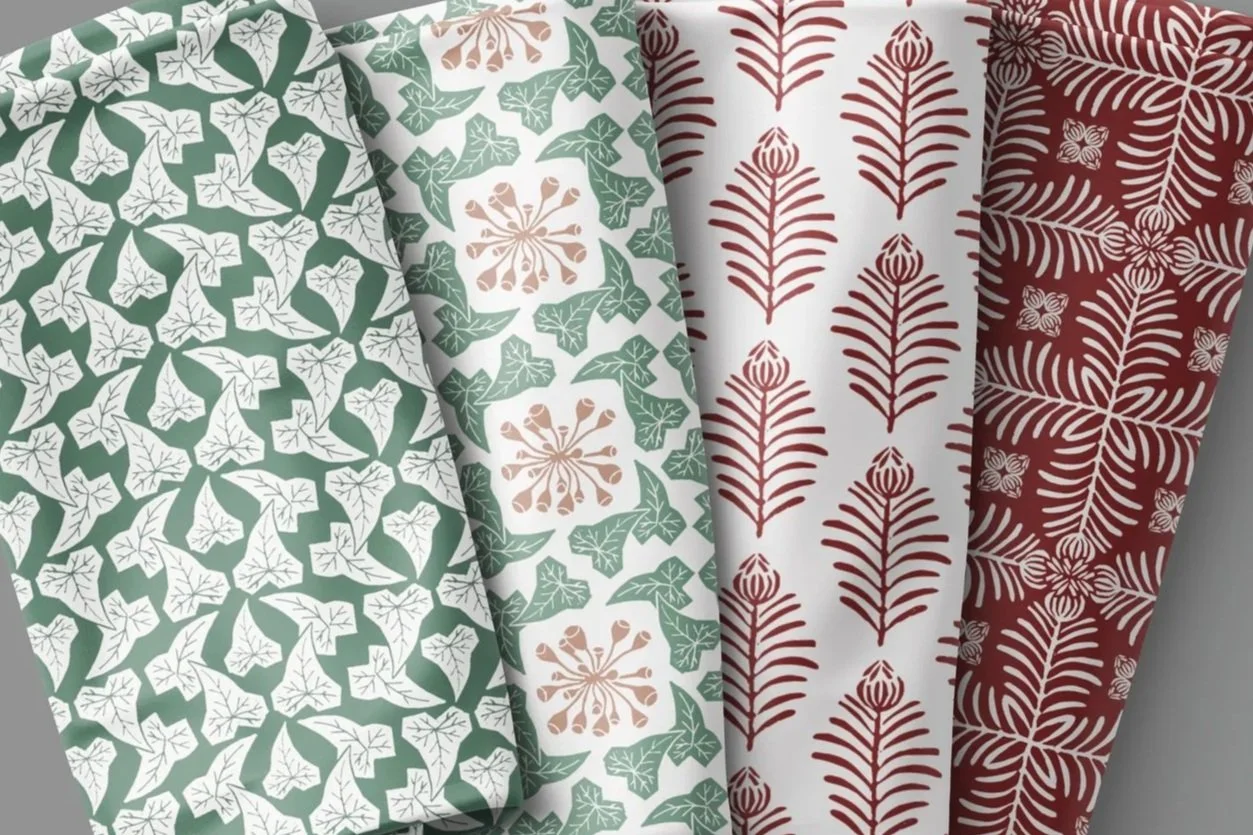 I work as a surface pattern designer and creative health practitioner, drawing inspiration from nature, texture, and the joy of making with my hands.